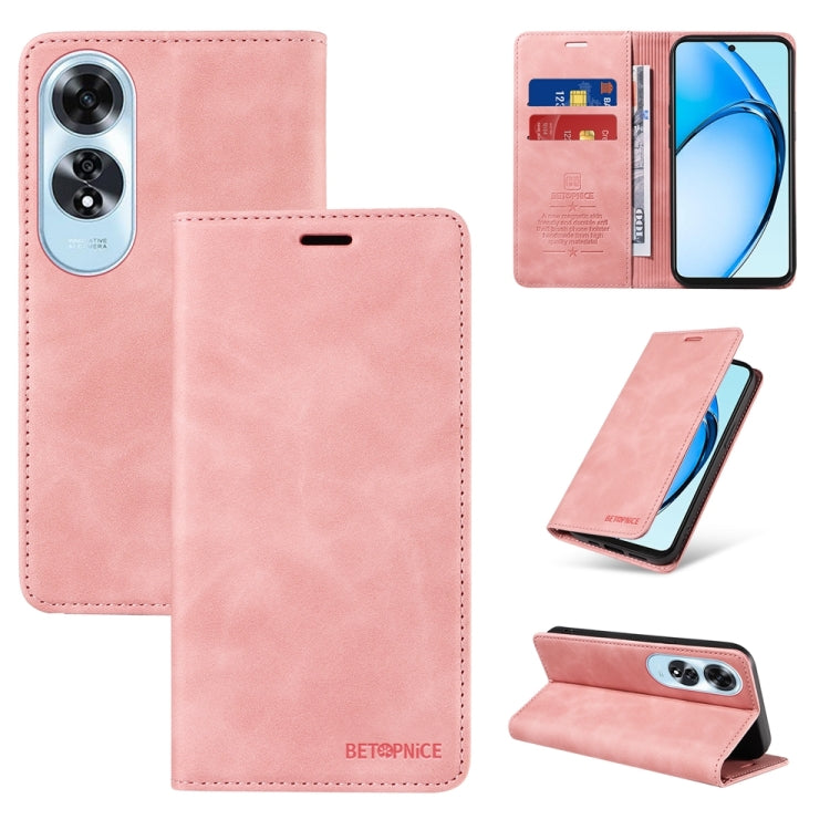 For OPPO A60 4G Global BETOPNICE Suction RFID Anti-theft Leather Phone Case(Pink)