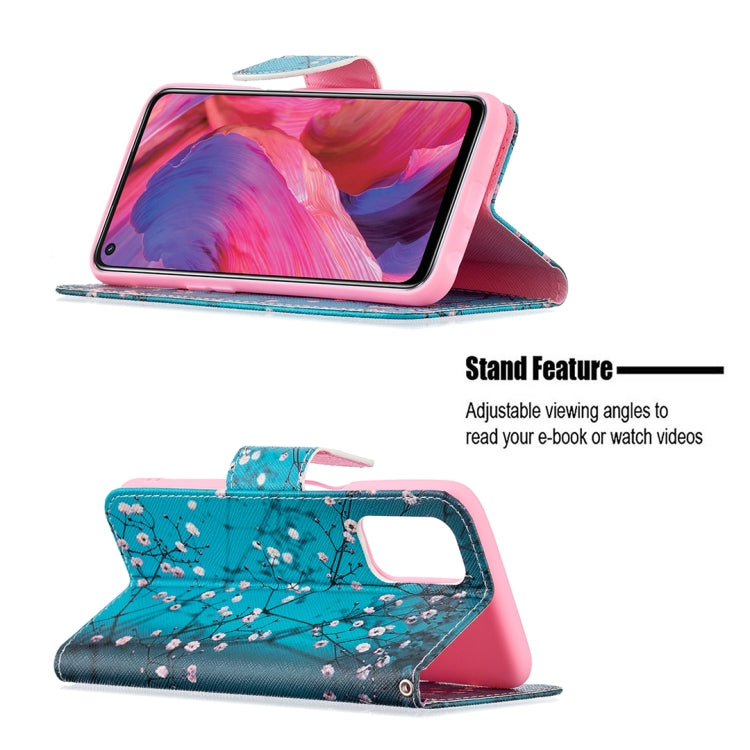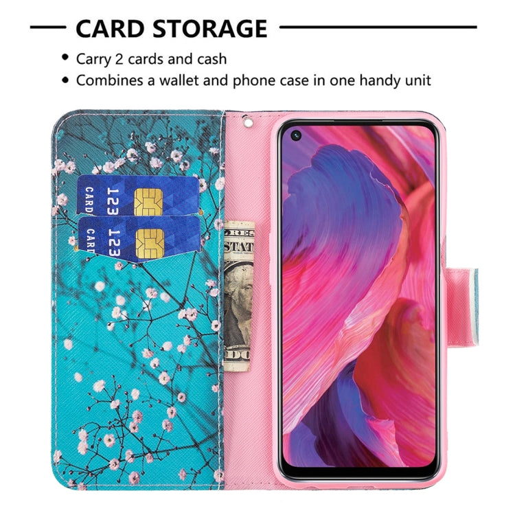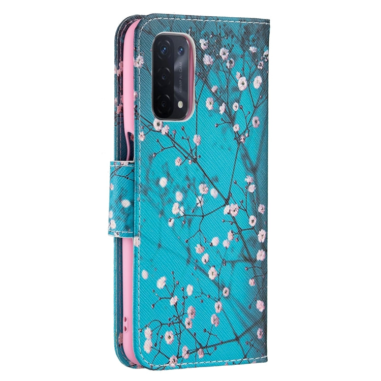 For OPPO A74 / A93 / A54 5G Colored Drawing Pattern Horizontal Flip Leather Case with Holder & Card Slots & Wallet(Plum Blossom)
