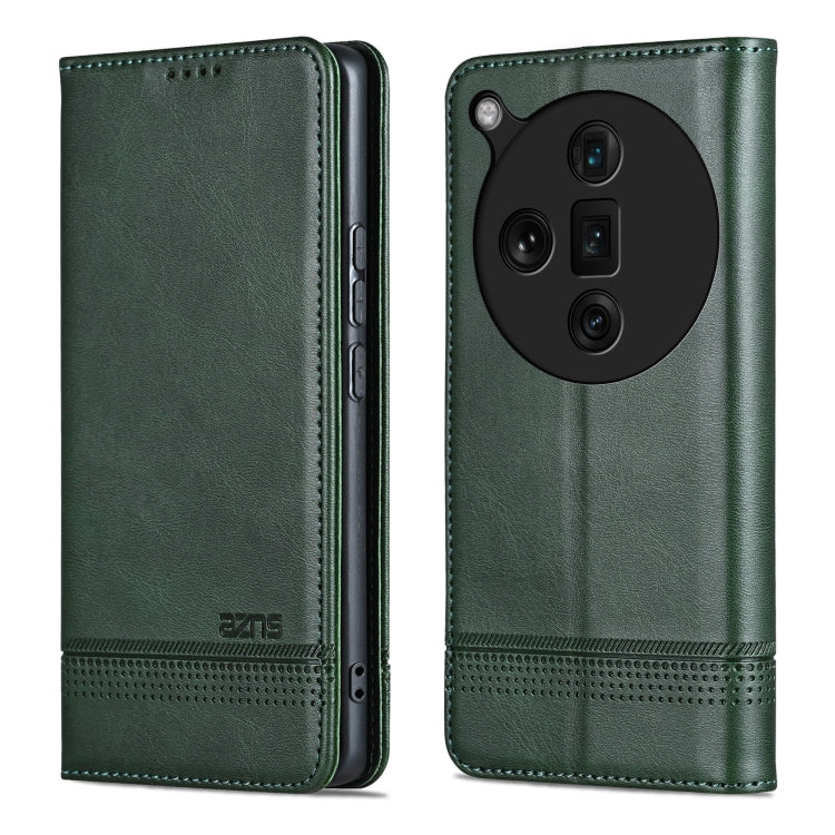 For OPPO Find X7 Ultra AZNS Magnetic Calf Texture Flip Leather Phone Case(Dark Green)