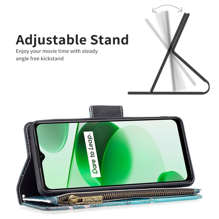 For OPPO Realme C35 Colored Drawing Pattern Zipper Leather Phone Case(Plum Blossom)