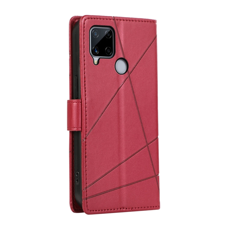 For Realme C15 / C25 / Narzo 30A PU Genuine Leather Texture Embossed Line Phone Case(Red)