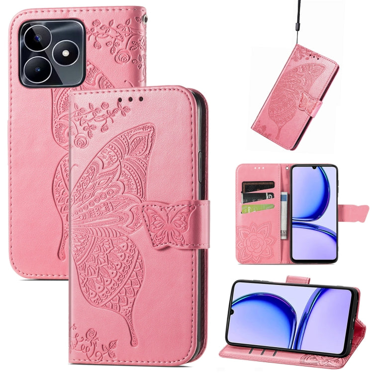 For Realme C53 Butterfly Love Flower Embossed Leather Phone Case(Pink)