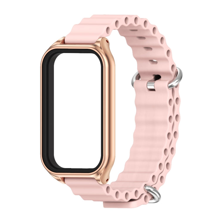 For Xiaomi Smart Band 8 Active / Redmi Band 2 Mijobs Metal Shell Ocean Silicone Watch Band(Pink Rose Gold)