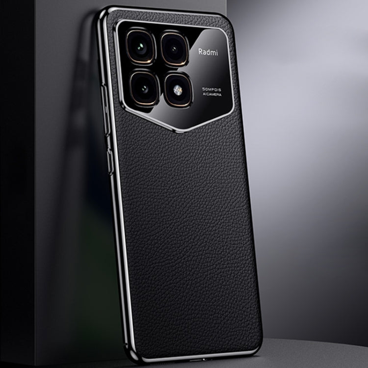 For Redmi K70 Champion First Layer Cowhide Leather Electroplated PC Phone Case(Black)