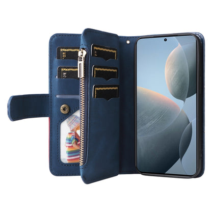 For Redmi K70 Dual-color 9 Card Slots Zipper Wallet Leather Phone Case(Blue)