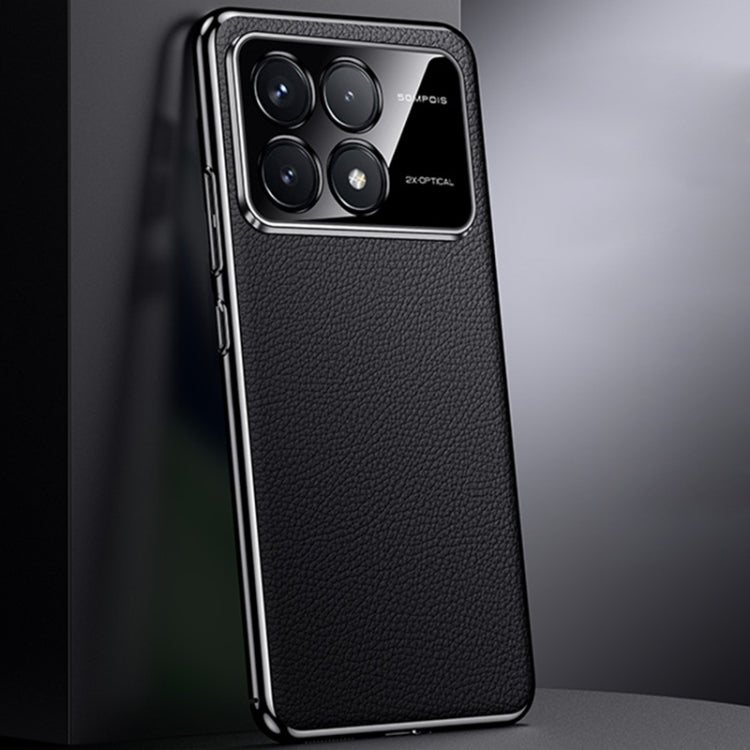 For Redmi K70 / K70 Pro First Layer Cowhide Leather Electroplated PC Phone Case(Black)