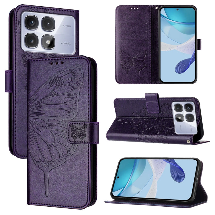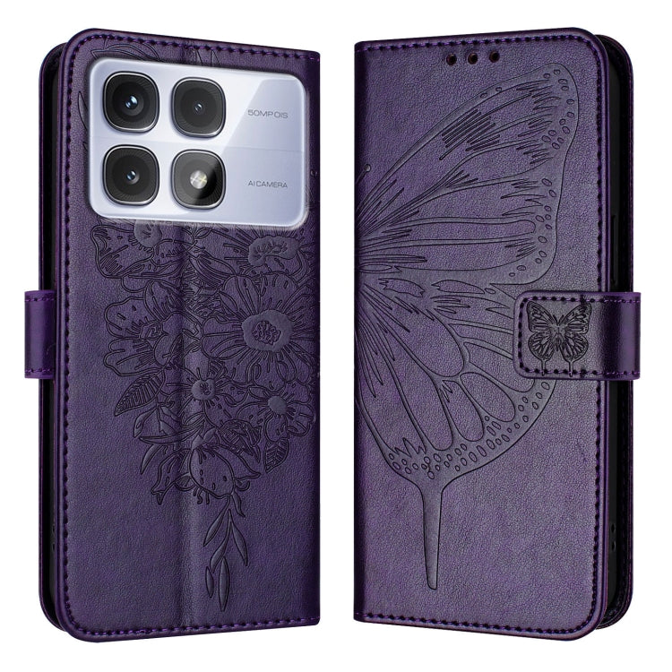 For Redmi K70 Ultra 5G Global Embossed Butterfly Leather Phone Case(Dark Purple)