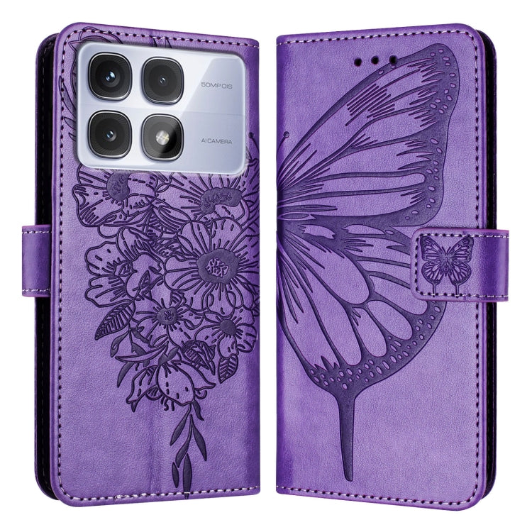 For Redmi K70 Ultra 5G Global Embossed Butterfly Leather Phone Case(Light Purple)