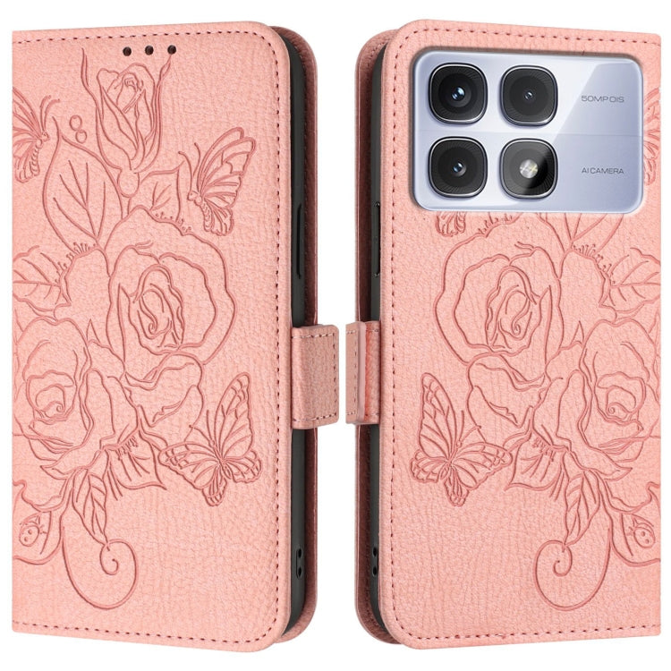 For Redmi K70 Ultra 5G Global Embossed Rose RFID Anti-theft Leather Phone Case(Pink)