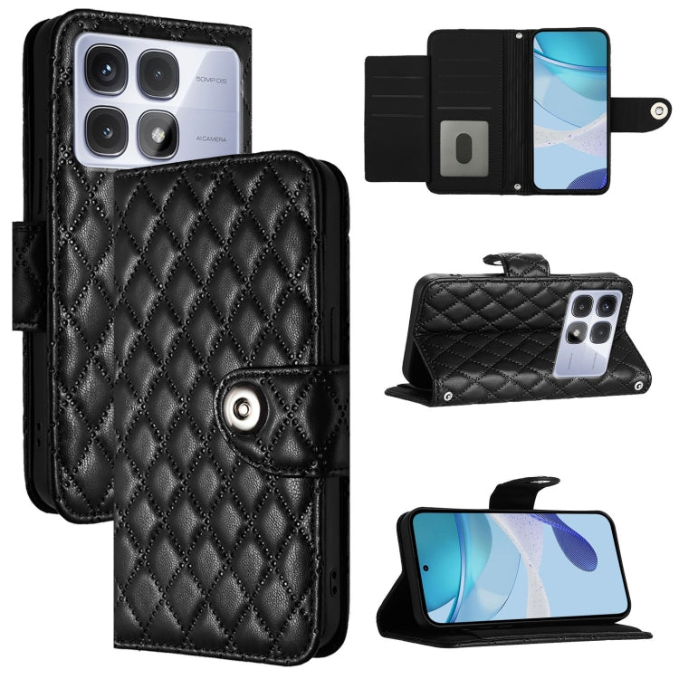 For Redmi K70 Ultra 5G Global Rhombic Texture Flip Leather Phone Case with Lanyard(Black)