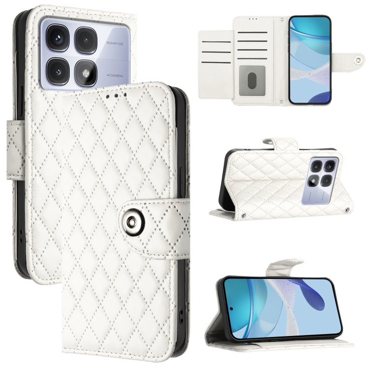 For Redmi K70 Ultra 5G Global Rhombic Texture Flip Leather Phone Case with Lanyard(White)