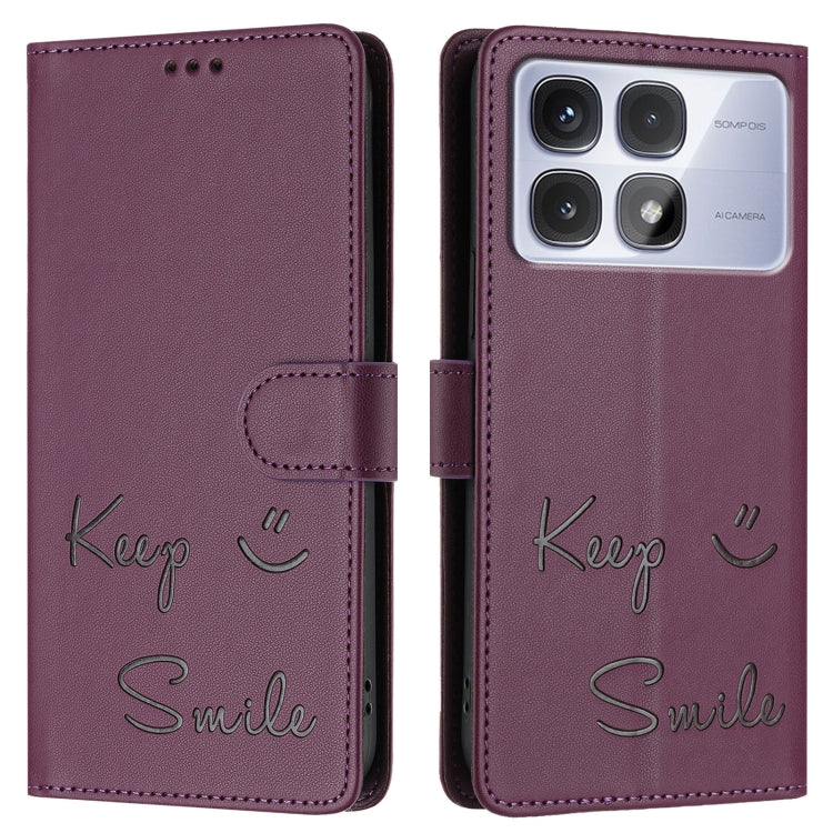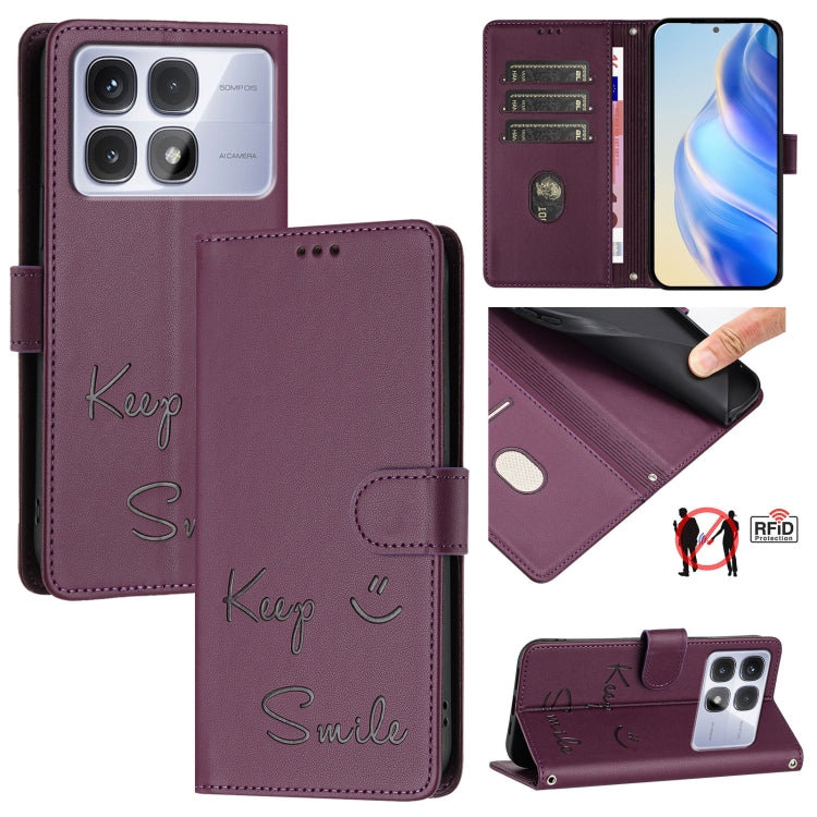 For Redmi K70 Ultra 5G Global Smile Embossing RFID Leather Phone Case(Violet)