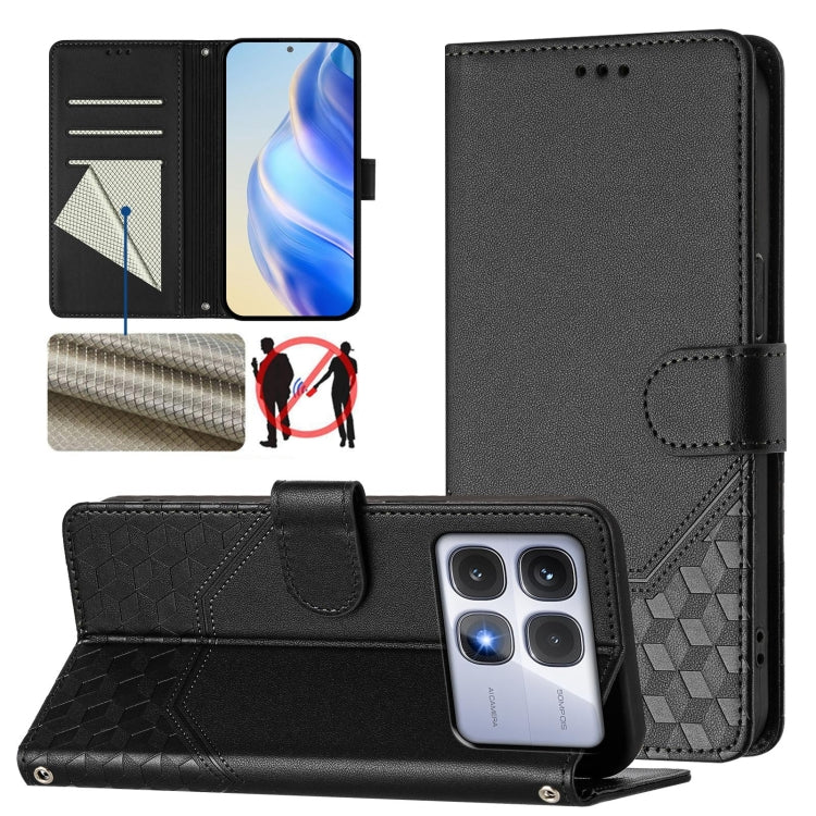 For Redmi K70 Ultra 5G Honeycomb Embossing RFID Leather Phone Case(Black)