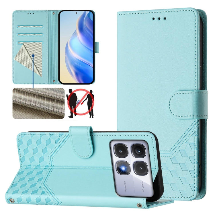 For Redmi K70 Ultra 5G Honeycomb Embossing RFID Leather Phone Case(Mint Green)