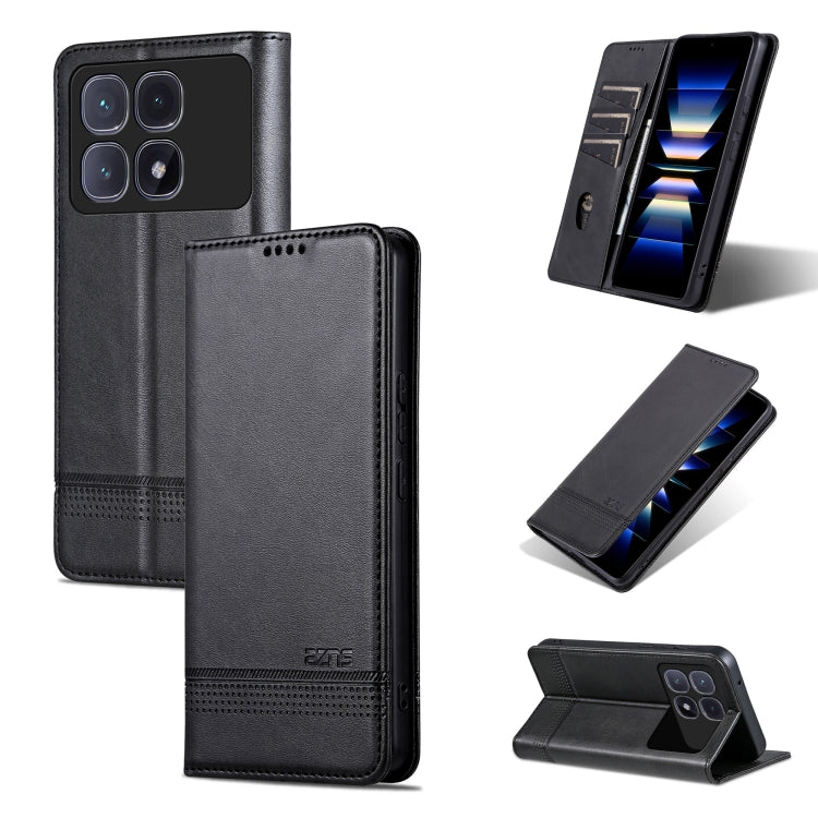 For Redmi K70 Ultra AZNS Magnetic Calf Texture Flip Leather Phone Case(Black)