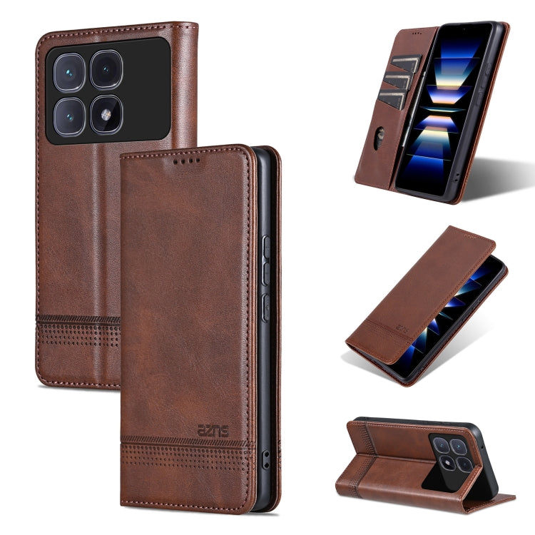For Redmi K70 Ultra AZNS Magnetic Calf Texture Flip Leather Phone Case(Dark Brown)