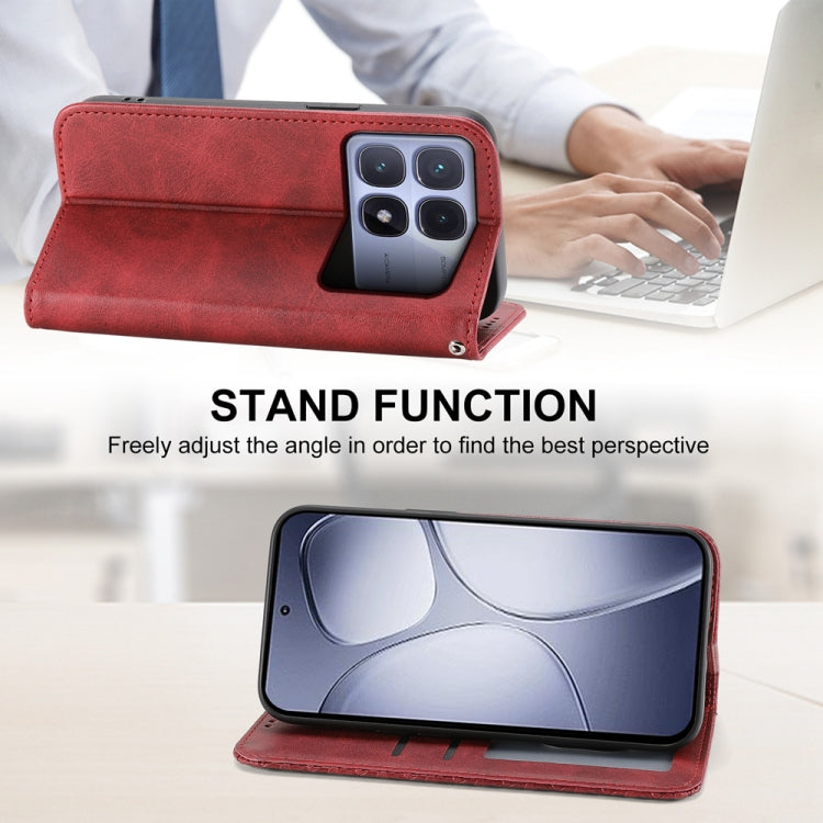 For Redmi K70 Ultra Cubic Grid Calf Texture Magnetic Leather Phone Case(Red)