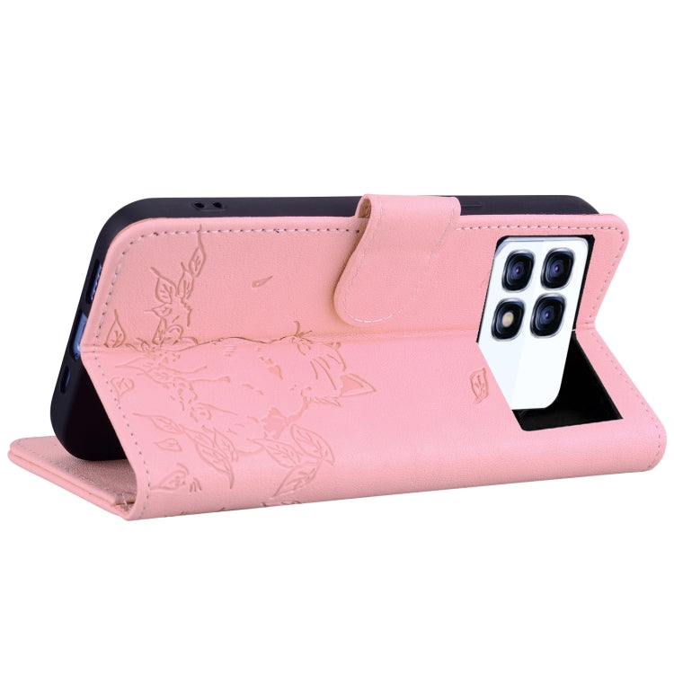 For Redmi K70 Ultra Cute Cat Embossed Leather Phone Case(Pink)