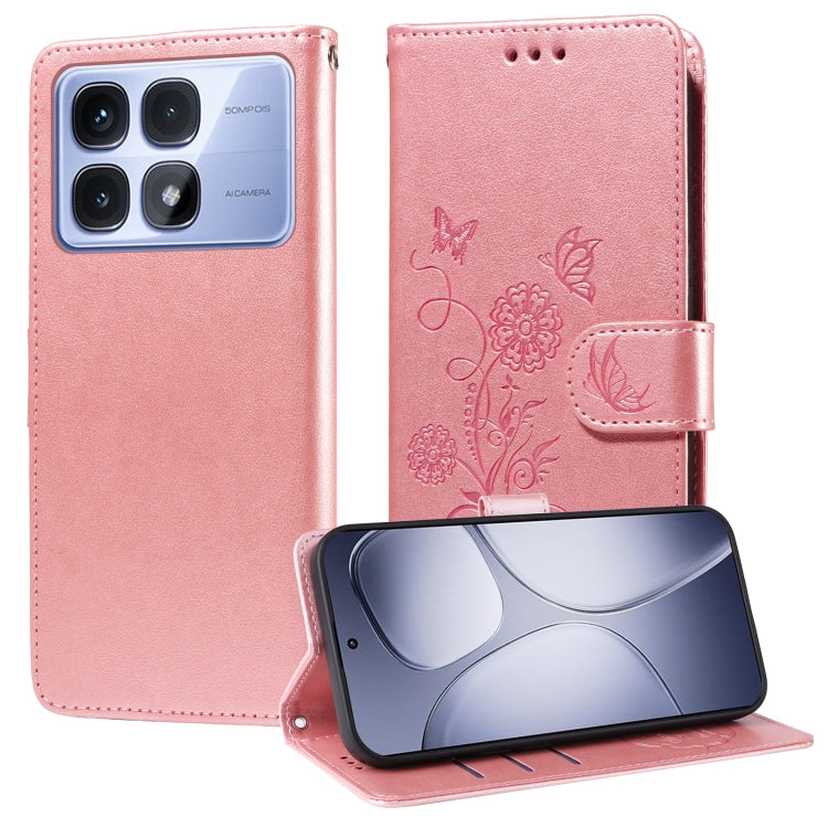 For Redmi K70 Ultra Embossed Butterfly Flowers Leather Phone Case(Rose Gold)