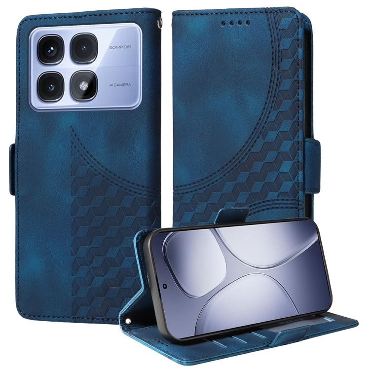 For Redmi K70 Ultra Embossed Rhombus Starry Leather Phone Case(Blue)