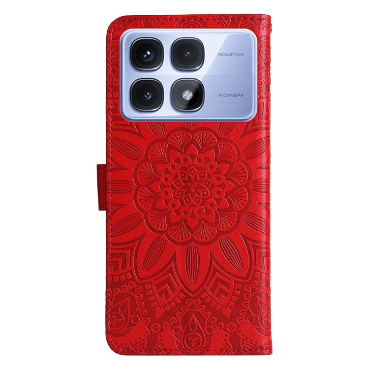 For Redmi K70 Ultra Embossed Sunflower Leather Phone Case(Red)