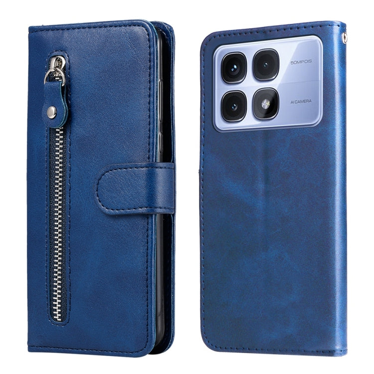 For Redmi K70 Ultra Fashion Calf Texture Zipper Leather Phone Case(Blue)