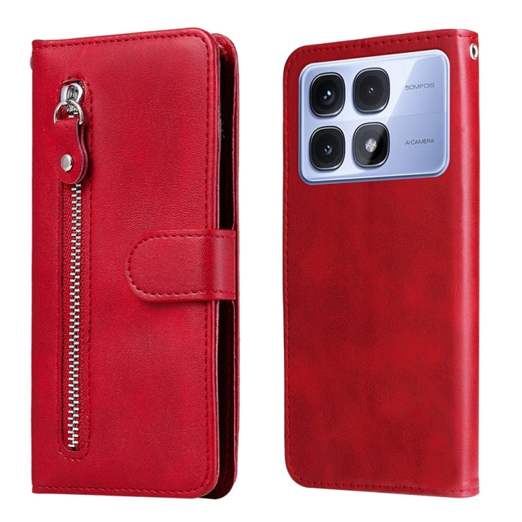 For Redmi K70 Ultra Fashion Calf Texture Zipper Leather Phone Case(Red)