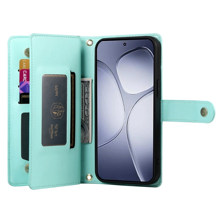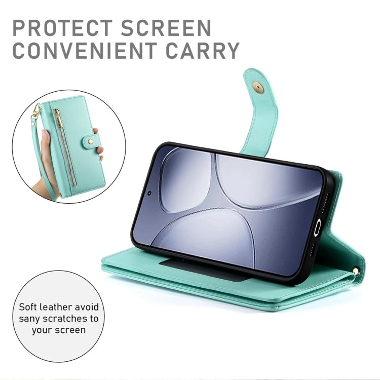 For Redmi K70 Ultra Nine Card-slot Zipper Wallet Bag Leather Phone Case(Mint Green)