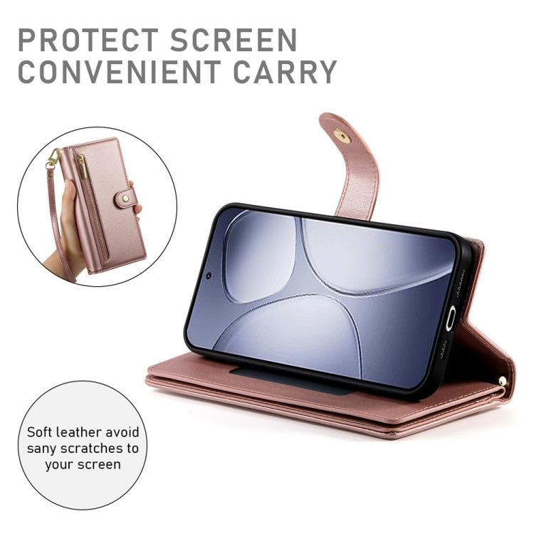 For Redmi K70 Ultra Nine Card-slot Zipper Wallet Bag Leather Phone Case(Pink)
