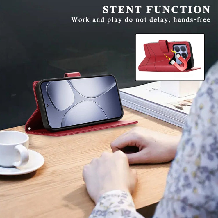 For Redmi K70 Ultra PU Genuine Leather Texture Embossed Line Phone Case(Red)