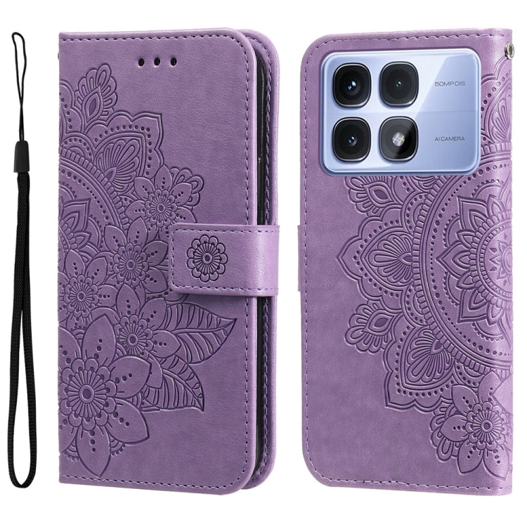 For Redmi K70 Ultra Seven-petal Flowers Embossing Leather Phone Case(Light Purple)