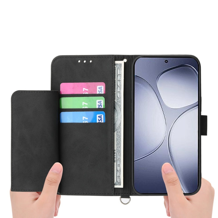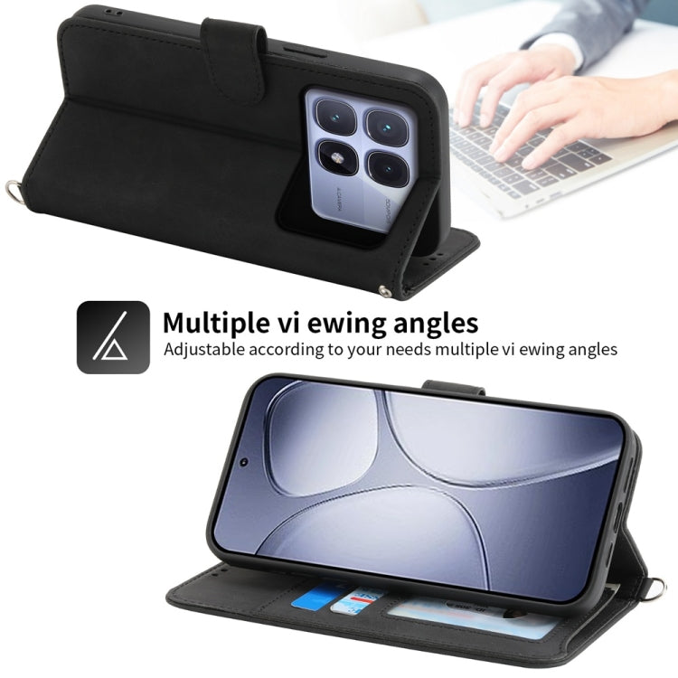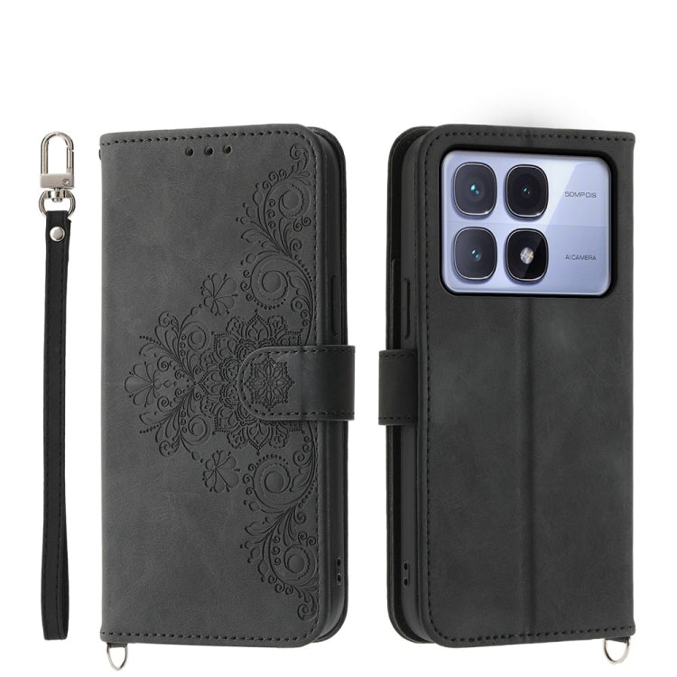 For Redmi K70 Ultra Skin Feel Flowers Embossed Wallet Leather Phone Case(Black)
