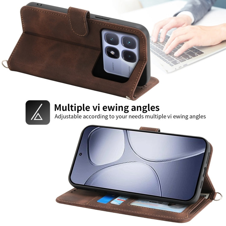 For Redmi K70 Ultra Skin Feel Flowers Embossed Wallet Leather Phone Case(Brown)