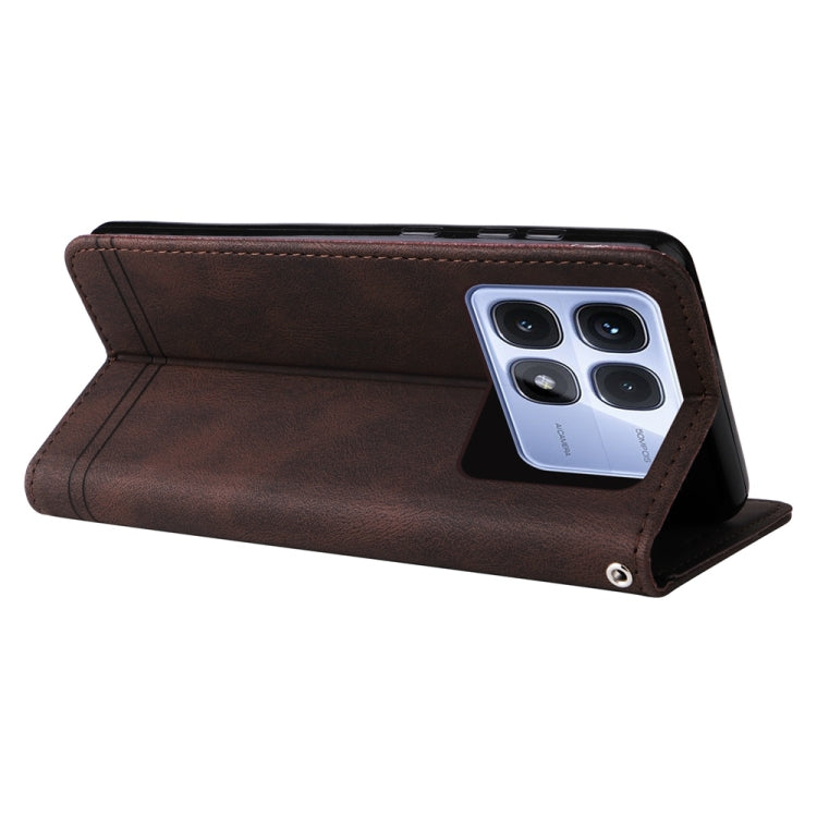 For Redmi K70 Ultra Skin Feel Life Tree Metal Button Leather Phone Case(Brown)
