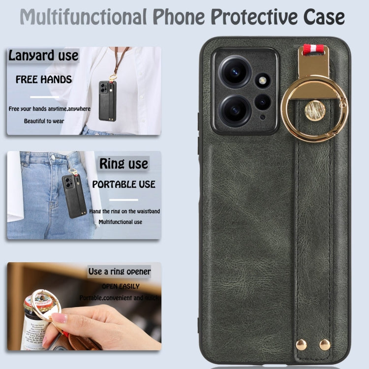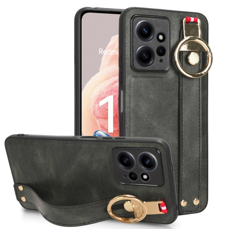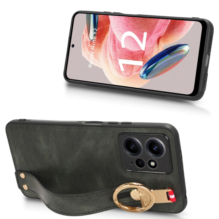 For Redmi Note 12 4G Global Wristband Leather Back Phone Case(Green)