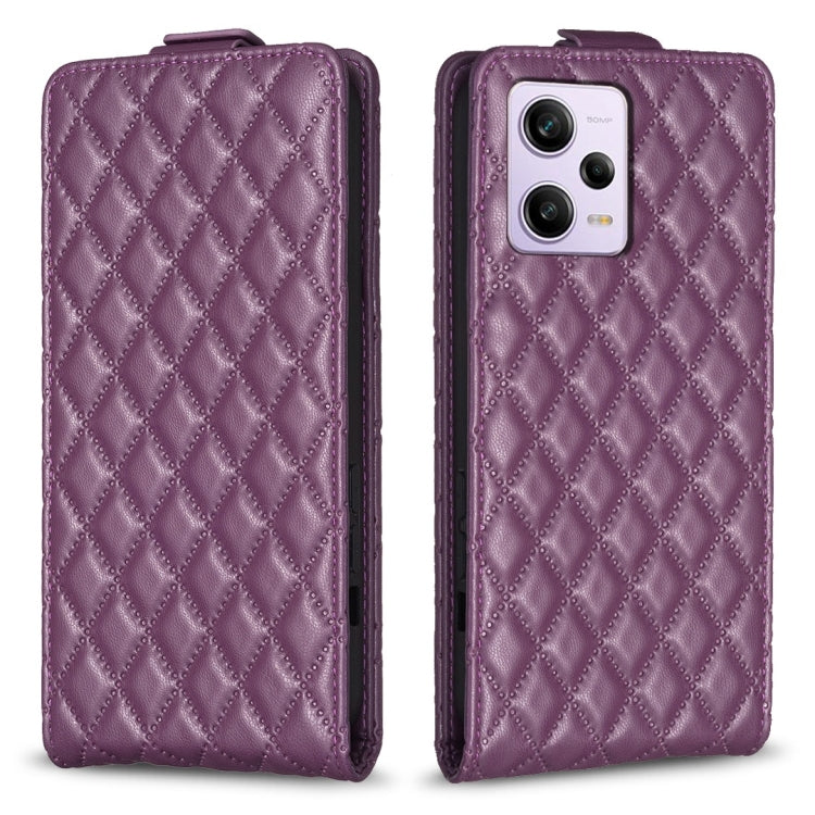 For Redmi Note 12 Pro Global Diamond Lattice Vertical Flip Leather Phone Case(Dark Purple)