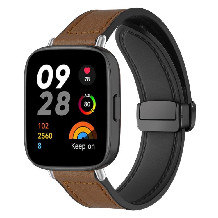 For Redmi Watch 3 xDfind Crazy Horse Pattern Silicone Skin Magnetic Buckle Watch Band(Dark Brown)