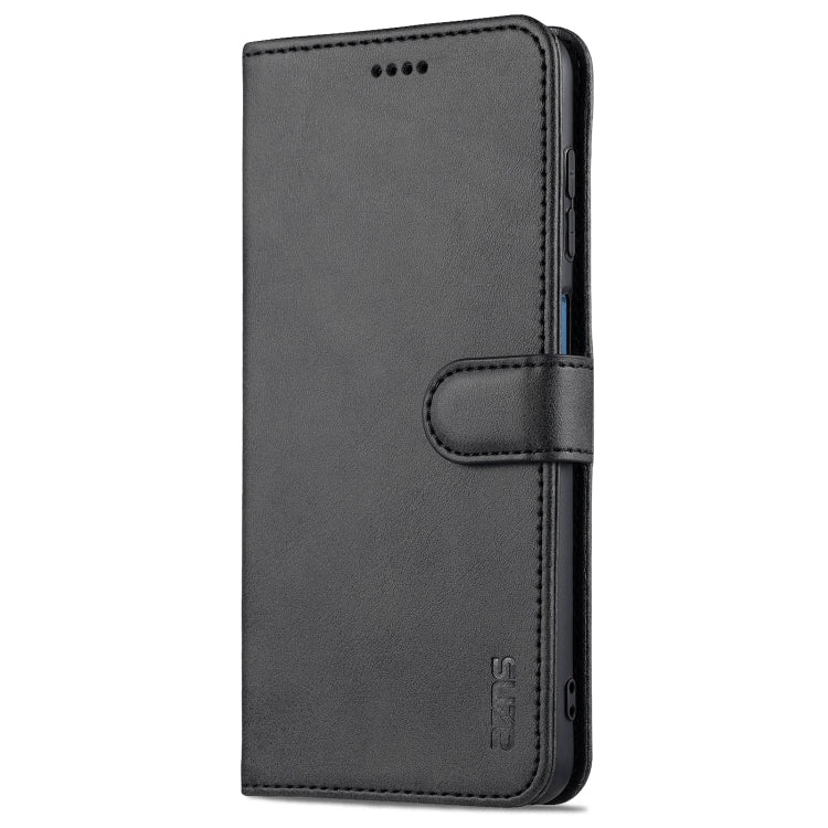 For Samsung Galaxy A12 5G AZNS Skin Feel Calf Texture Horizontal Flip Leather Case with Card Slots & Holder & Wallet(Black)