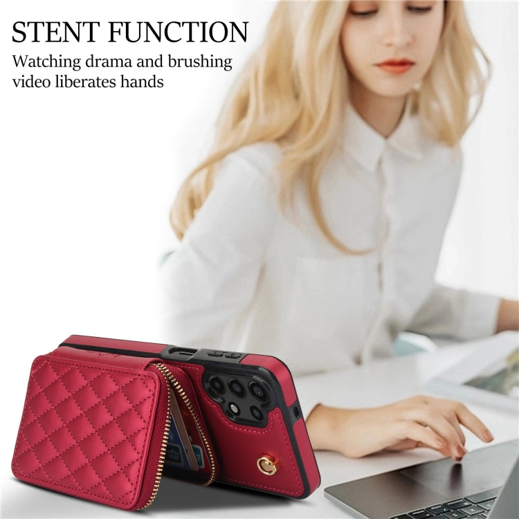 For Samsung Galaxy A13 4G / 5G AwQuer Crossbody Zipper Wallet Rhombic Leather Back Phone Case(Red)