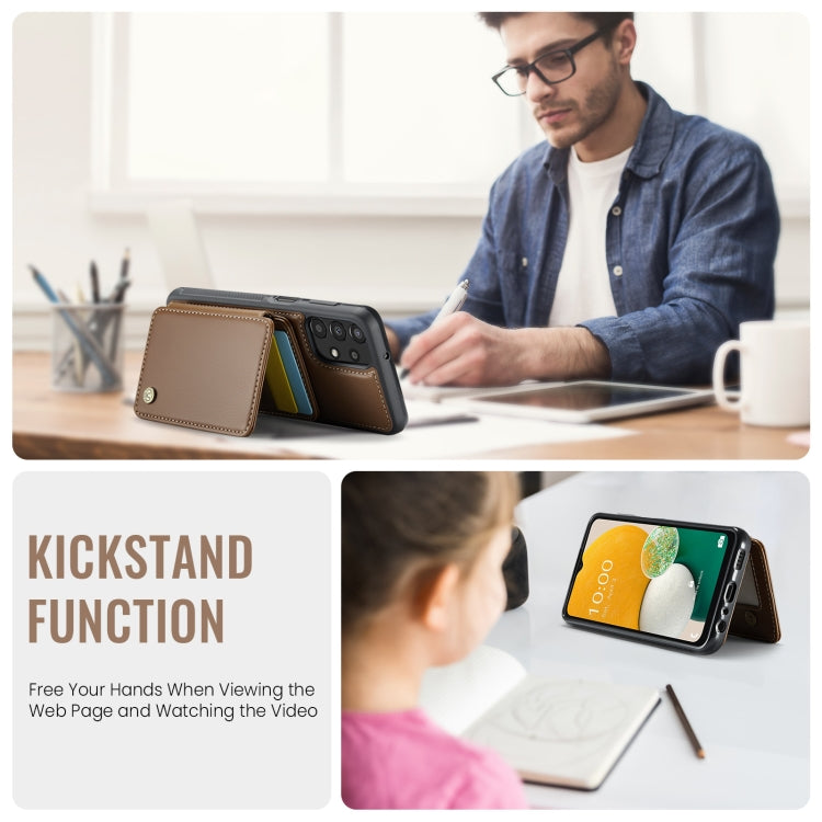 For Samsung Galaxy A13 4G JEEHOOD J05 Business Magnetic Style RFID Leather Phone Case(Brown)