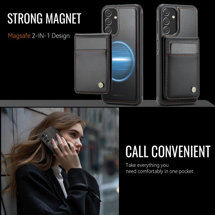For Samsung Galaxy A13 5G JEEHOOD J06 British Style RFID MagSafe Card Bag PU Phone Case(Black)