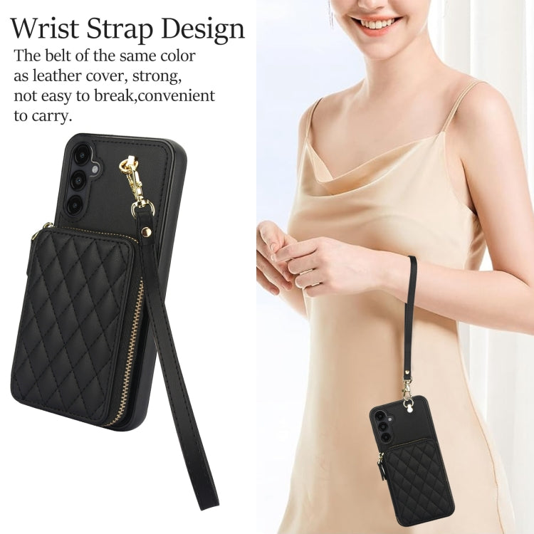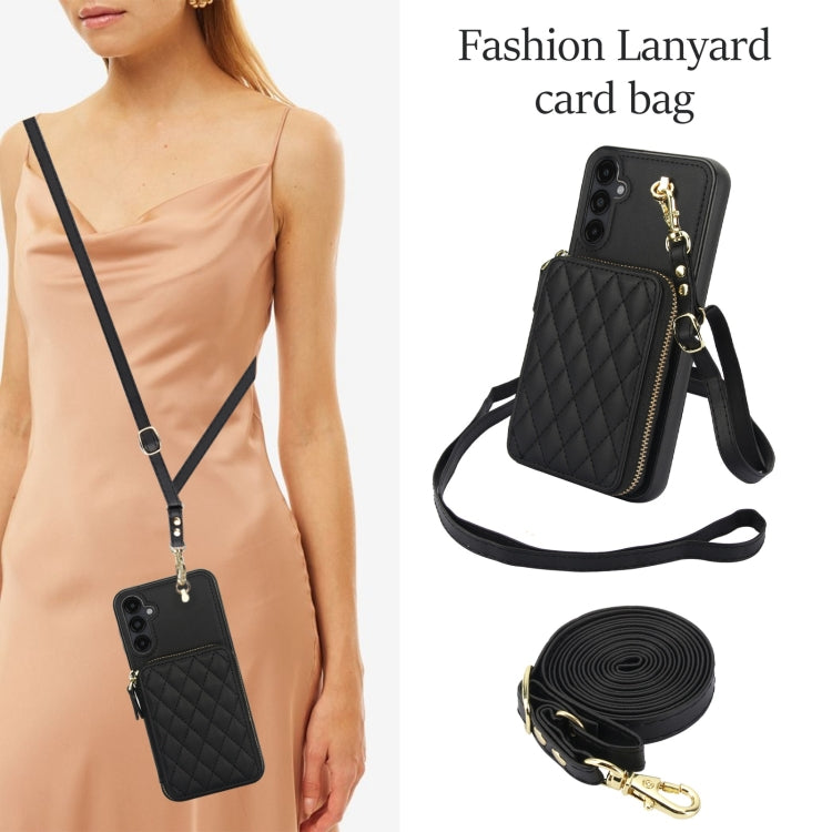 For Samsung Galaxy A14 4G / 5G AwQuer Crossbody Zipper Wallet Rhombic Leather Back Phone Case(Black)