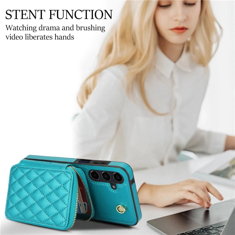 For Samsung Galaxy A15 4G / 5G AwQuer Crossbody Zipper Wallet Rhombic Leather Back Phone Case(Green)