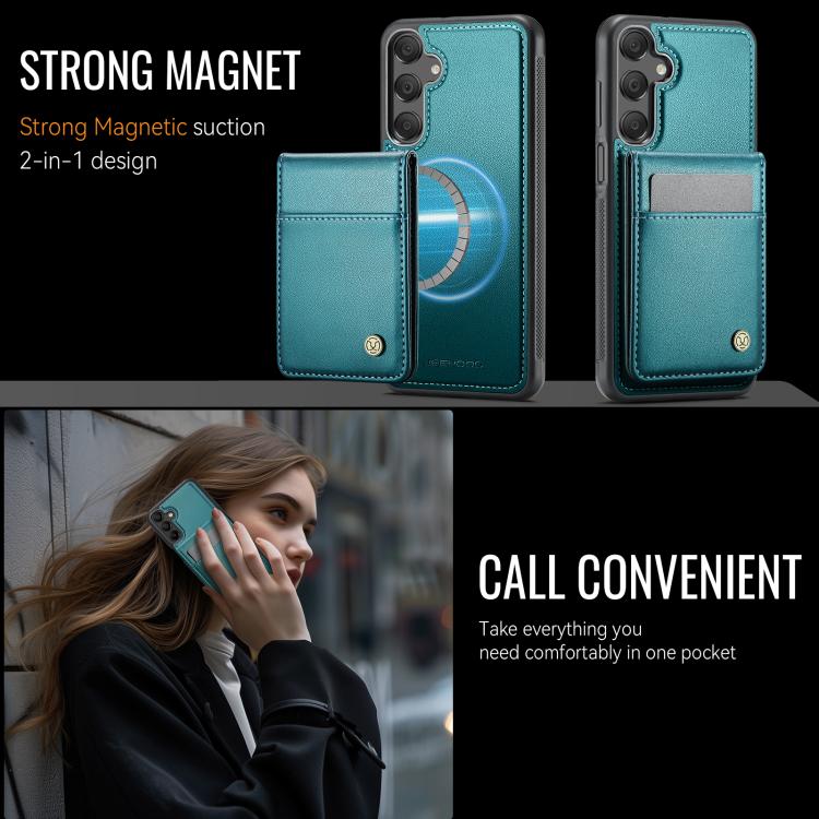 For Samsung Galaxy A15 JEEHOOD J06 British Style RFID MagSafe Card Bag PU Phone Case(Green)