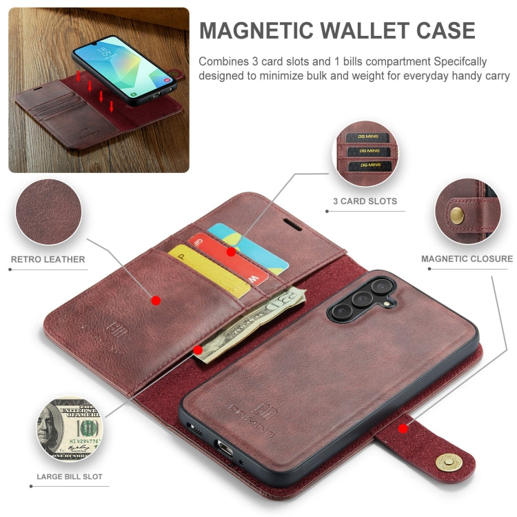 For Samsung Galaxy A16 5G DG.MING Crazy Horse Texture Detachable Magnetic Leather Case(Red)