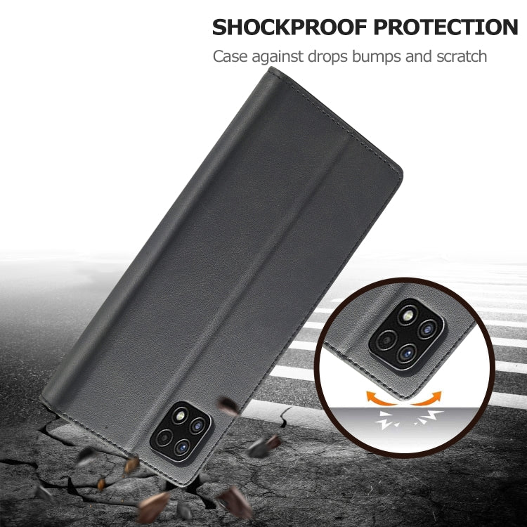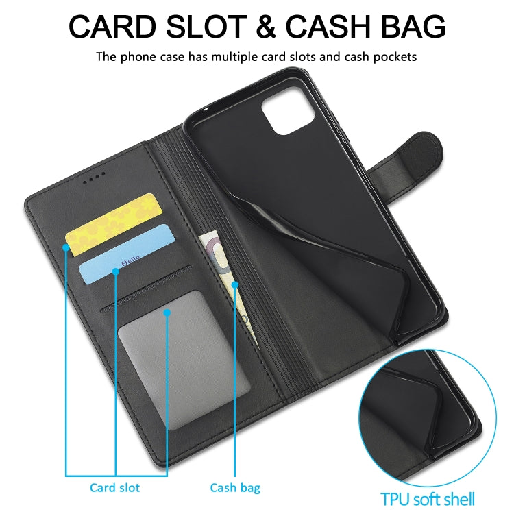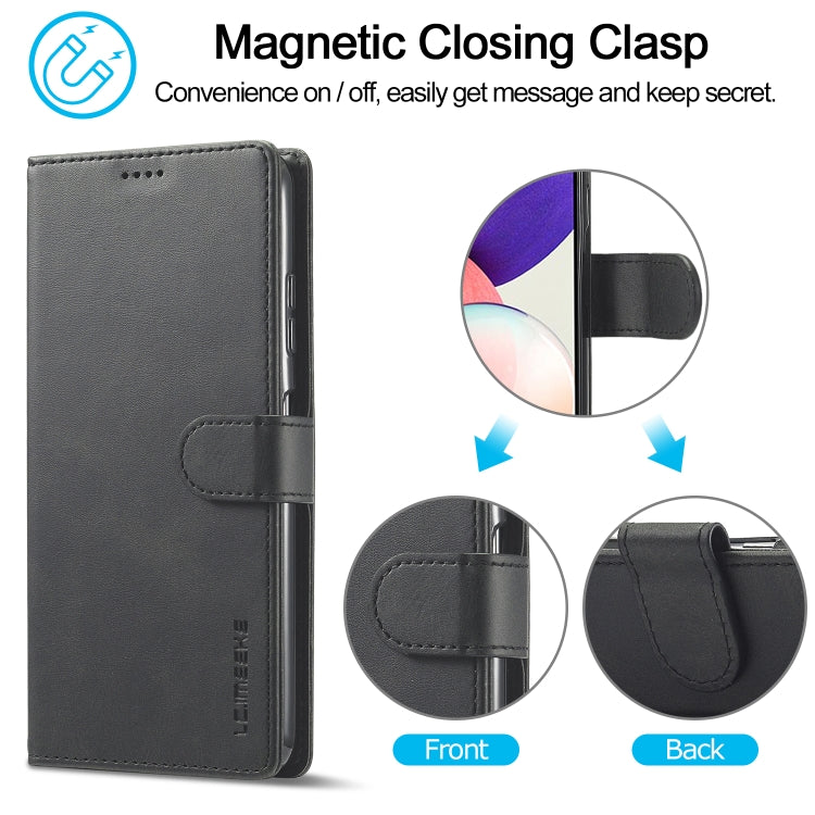 For Samsung Galaxy A22 5G LC.IMEEKE Calf Texture Horizontal Flip Leather Case with Holder & Card Slots & Wallet(Black)