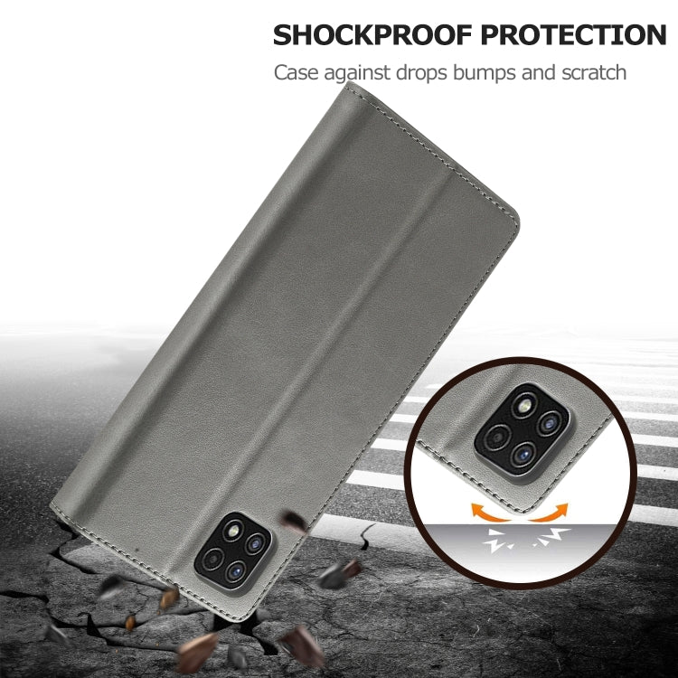 For Samsung Galaxy A22 5G LC.IMEEKE Calf Texture Horizontal Flip Leather Case with Holder & Card Slots & Wallet(Grey)
