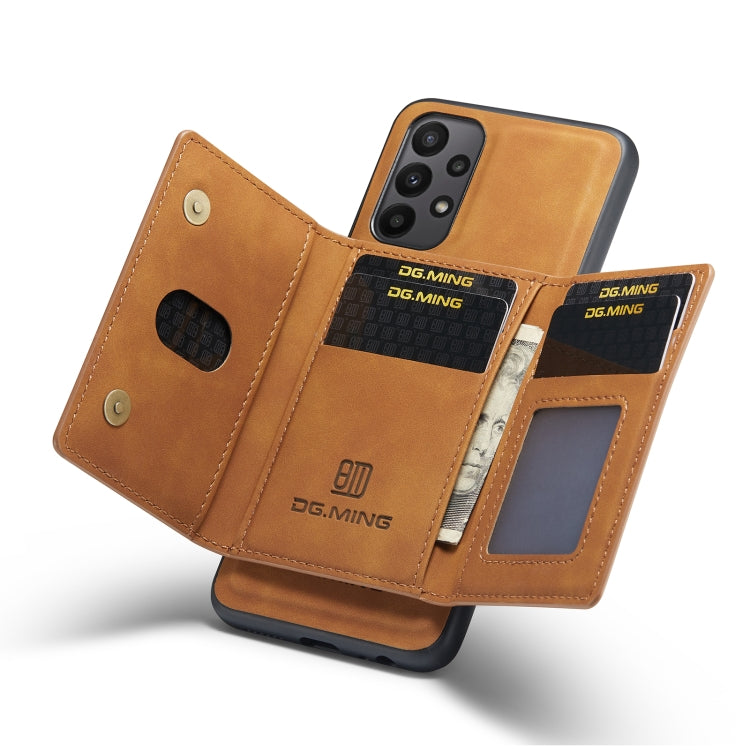 For Samsung Galaxy A23 5G DG.MING M2 Series 3-Fold Multi Card Bag Phone Case(Brown)