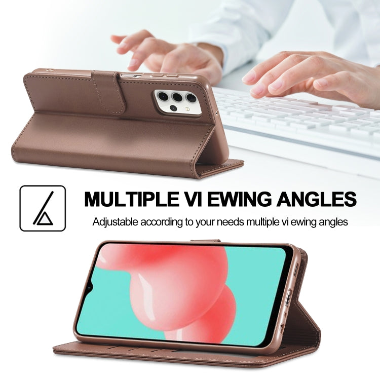 For Samsung Galaxy A32 5G LC.IMEEKE Calf Texture Horizontal Flip Leather Case, with Holder & Card Slots & Wallet & Photo Frame(Coffee)