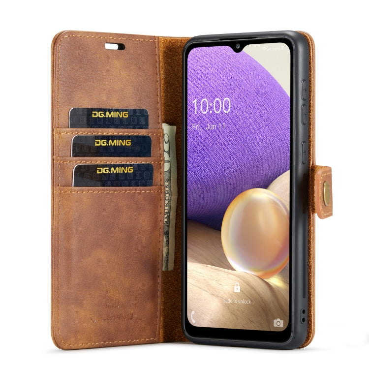 For Samsung Galaxy A33 5G DG.MING Crazy Horse Texture Detachable Magnetic Leather Phone Case(Brown)
